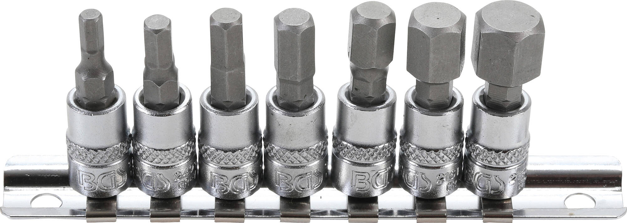 Kärkihylsysarja - 6,3 mm (1/4") - kuusiokolo 4 - 12 mm 7-os. Sisältää: 4 - 5 - 6 - 7 - 8 - 10 - 12 mm
