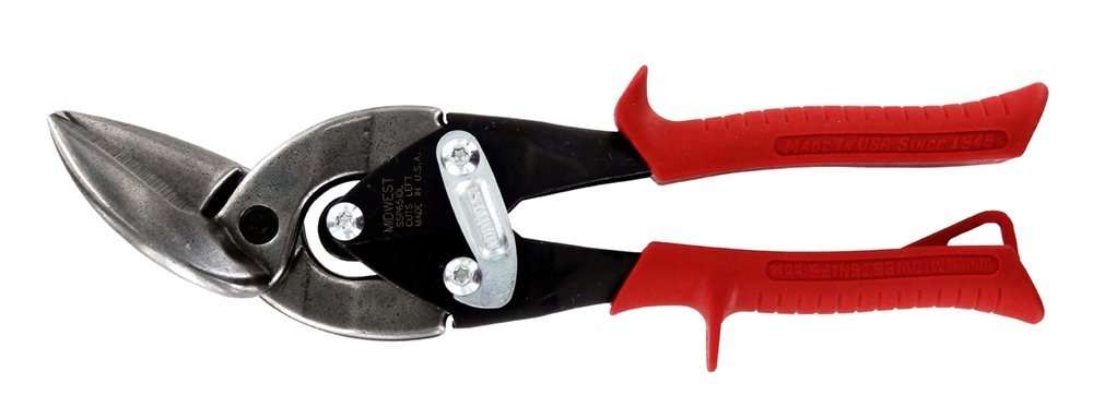 Midwest peltisakset. Leikkaa suoraan ja tiukasti kaartaen oikealle. Erityisesti kovien metallien leikkaamisen, kuten ruostumattoman teräksen