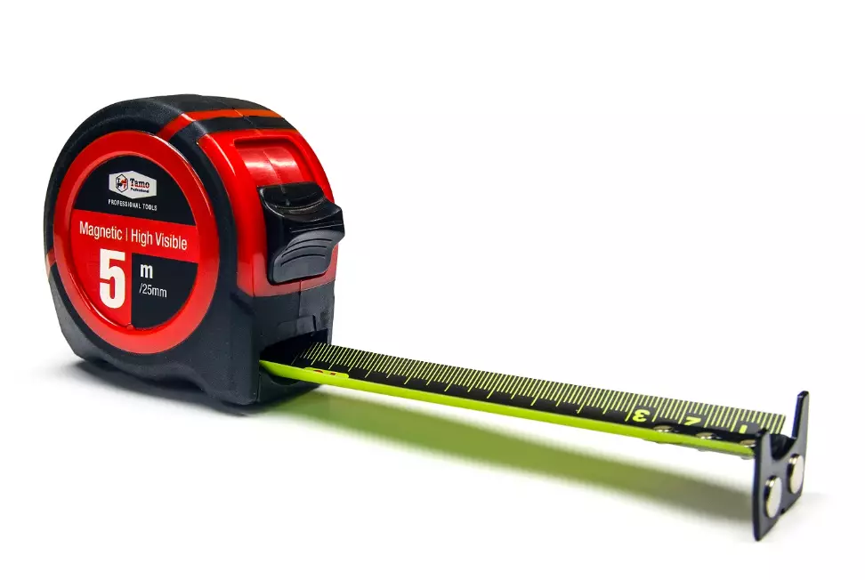 Laadukas 5M rullamitta, vahva magneettikärki ja kestävä nylonpinnoitettu selkeä lukuinen mustapohjainen nauha. Ergonominen kompakti kotelointi. EU:n MID II tarkkuusnormi.