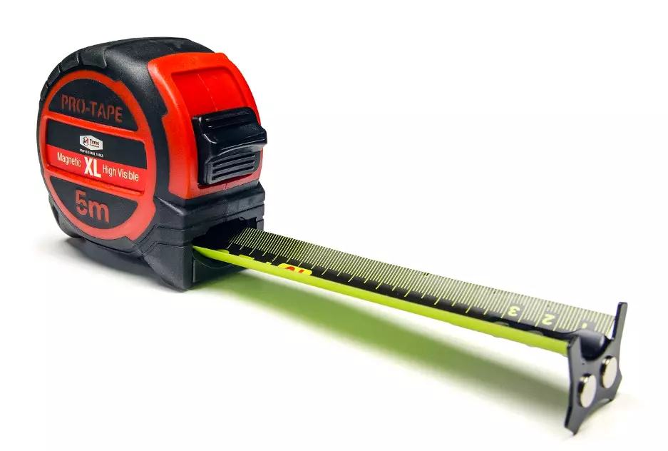Laadukas 5M rullamitta XL Hi-Vis magneetilla tarjoaa luotettavan mittauksen, vahva magneettikärki ja 32 mm leveä mustapohjainen nauha helpottaa numeroiden lukemista.