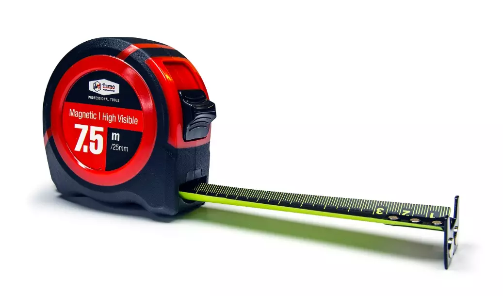 Laadukas 7,5M rullamitta, vahva magneettikärki ja kestävä nylonpinnoitettu selkeä lukuinen mustapohjainen nauha. Ergonominen kompakti kotelointi. EU:n MID II tarkkuusnormi.