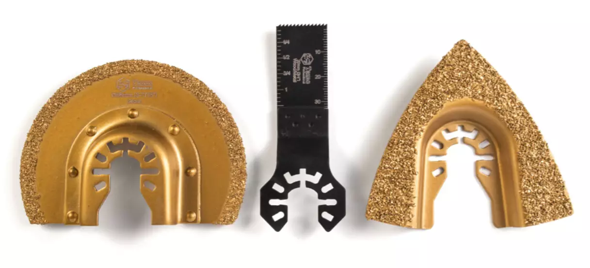 Multitool 3-os teräsarja kaakelille. Sisältää: kovametalliterät 88 mm puolipyöreä ja 78 mm hiomakolmio, sekä 20 mm upotusterä. Universal-kiinnityksen ansiosta käy useimpiin markkinoilla oleviin laitteisiin.