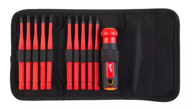 Milwaukee VDE vaihtokärkimeisselit. VDE-sertifioidut käsityökalut (DIN EN/IEC 60900). Testattu 10 000 V asti ja taattu 1000 V asti. Ohut varren halkaisija helpottaa pääsyä matalalla oleviin ruuveihin. Laserkaiverretut kokomerkinnät helpottavat koon tunnistamista. Toimitetaan kompaktissa säilytyspussissa.