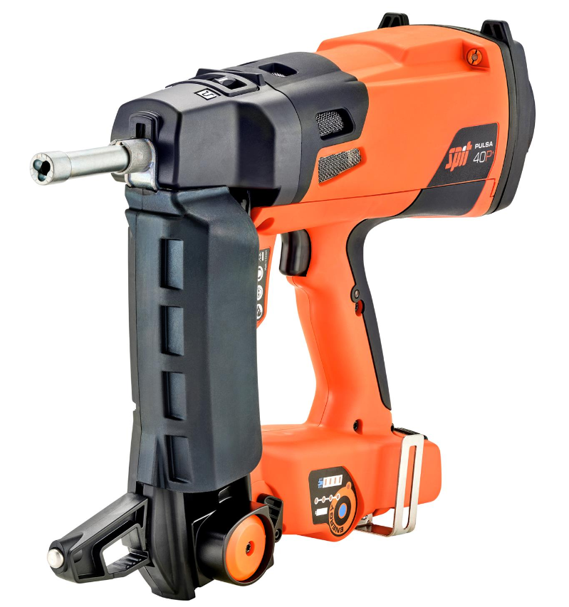 Spit Pulsa 40P+ johdoton impulssinaulain teräs-, tiili- ja betonikiinnityksiin. Kaasutekniikka antaa jopa 16% enemmän tehoa kiinnityksiin. Jopa 10% kevyempi kuin vastaavat akkunaulaimet. Lisävarusteilla muunneltavissa LVIS-kiinnityksiin. LED-näyttö kertoo jäljellä olevan kaasu- ja akkutehon. Parannettu pölysuojaus vähentää huoltotarvetta. Iskuvoima: 100 J. Kiinnityksiä/akkulataus: 10 000 naulausta. Kiinnityksiä/kaasupatruuna: 500 naulausta. Akkutyyppi: Lithium 2.5 Ah. Akun latausaika: 105 min.