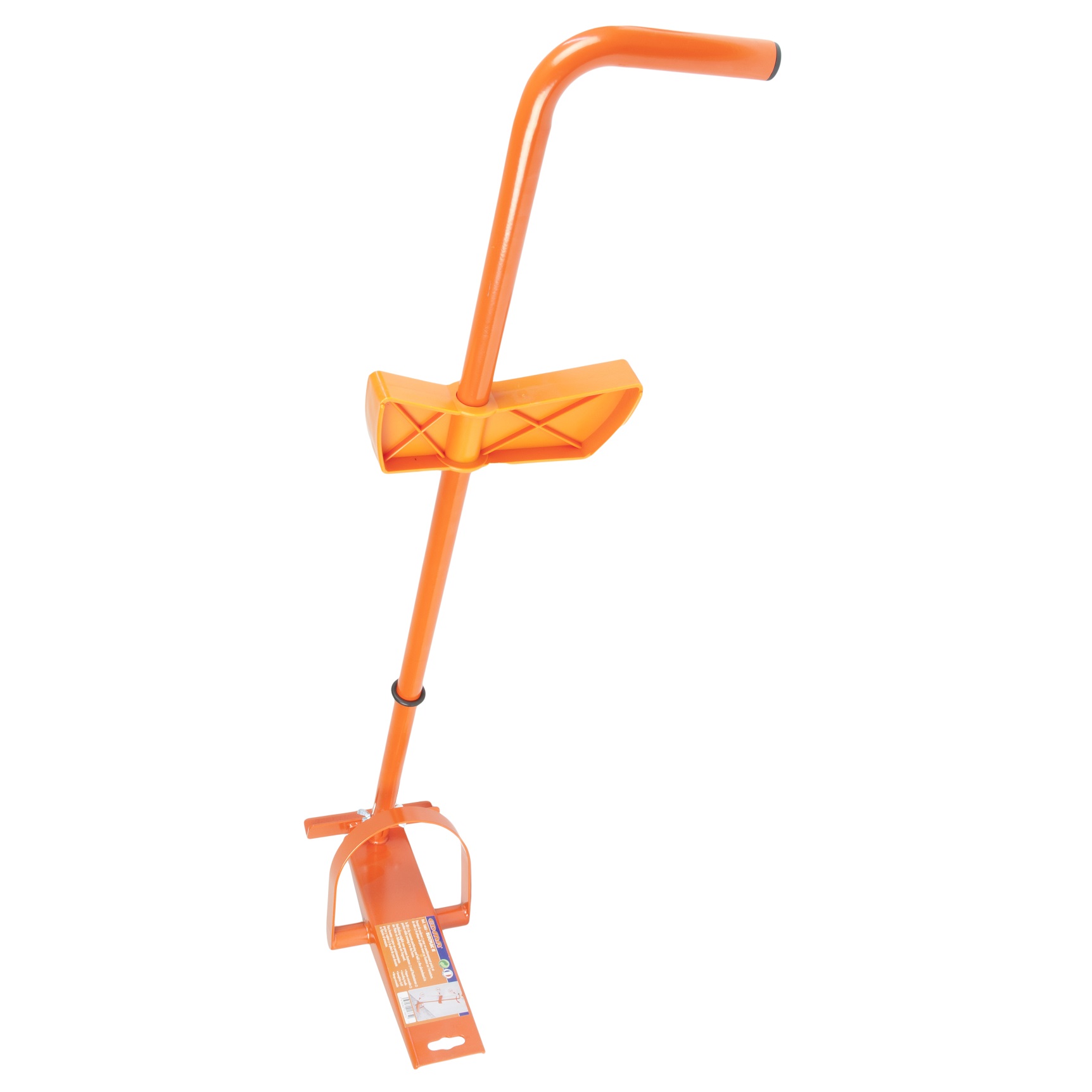 Levynasennustuki on korvaamaton apuväline suurten ja pienten kipsilevyjen asentamiseen. Kipsilevy asennetaan pystyasennossa levynasennustuen etureunaan sille tarkoitetulle paikalle. Voit liikuttaa koko levyä vaivattomasti seinän vieressä tuessa olevan kahvan avulla. Kun levy on asennettu sivusuuntaisesti oikeaan kohtaan paina levy seinää vasten liikuttamalla levynasennustukea. Levyn korkeus säädetään painamalla jalalla asennustuen jalkapainiketta. Kun oikea korkeus on saavutettu kiristä musta kiristin levyä vasten. Tämä painaa levyn tukevasti seinää vasten, jolloin voit irrottaa otteen levystä sekä laitteesta. Näin levy pysyy tukevasti paikoillaan kiinnityksen aikana.