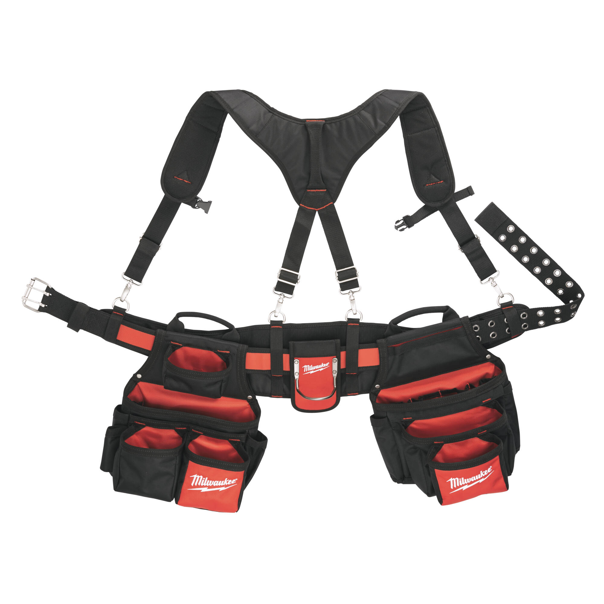 Milwaukee työkaluvyö ja valjaat. Kestävä 1680D ballistinen nylonrakenne. Pehmustetut 4-pisteen valjaat jakavat painon tasaisesti ja lisäävät käyttömukavuutta. Metalliset silmukat mahdollistavat tukihenkseleiden käytön tarvittaessa.
