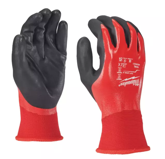Milwaukee Cut A päällystetyt asentajan käsineet. Koko käden kaksoisnitriilipäällyste hylkii vettä ja öljyä: ensimmäinen, koko käden peittävä päällystekerros on valmistettu nitriilistä... Lue lisää